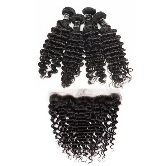 13X4 Frontal With 4 Bundles Malaysian Deep Wave Human Hair