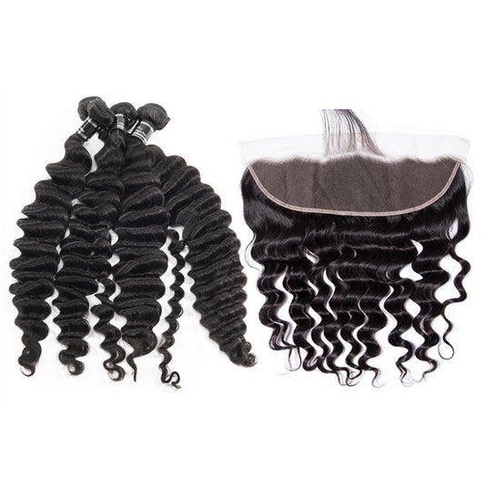Loose Deep Human Hair 4 Bundles With 13X4 Frontal Peruvian