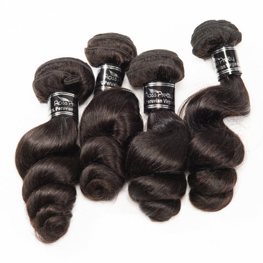 Loose Wave Curly Peruvian Hair Weave 4 Bundles Human Virgin Hair