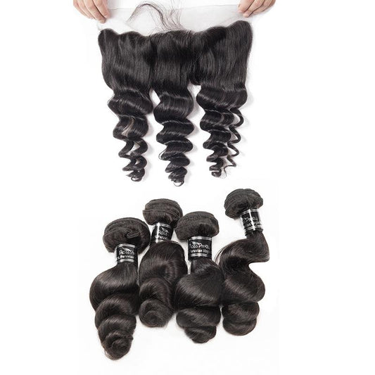 4 Bundles With 13X4 Lace Frontal Loose Wave Brazilian Human Hair
