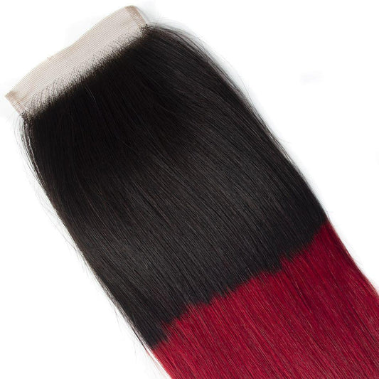 4*4 Lace Closure 1b Red Human Hair Swiss Closure