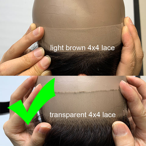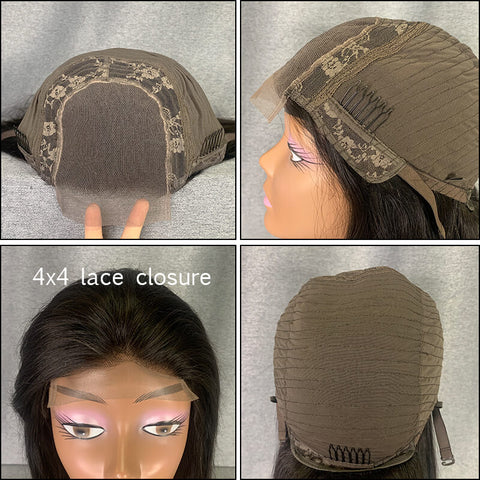 ①A: Closure Wig. This closure wig is 4X4 transparent lace wig, which makes your wig look more natural and real. The 4X4 size lace help you save more. And we use 100% human virgin hair.
