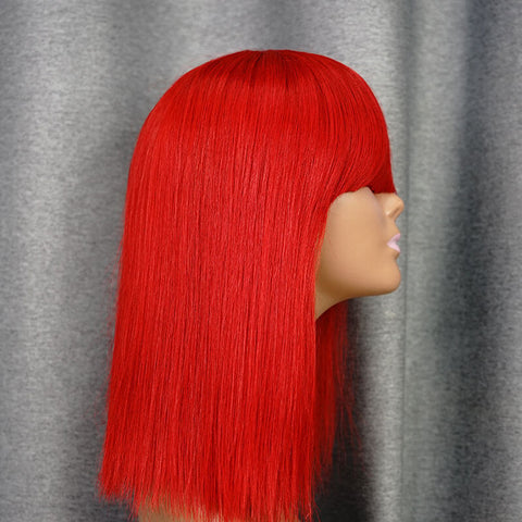 Red Bang Wig Short Bob Wig Straight Hair
